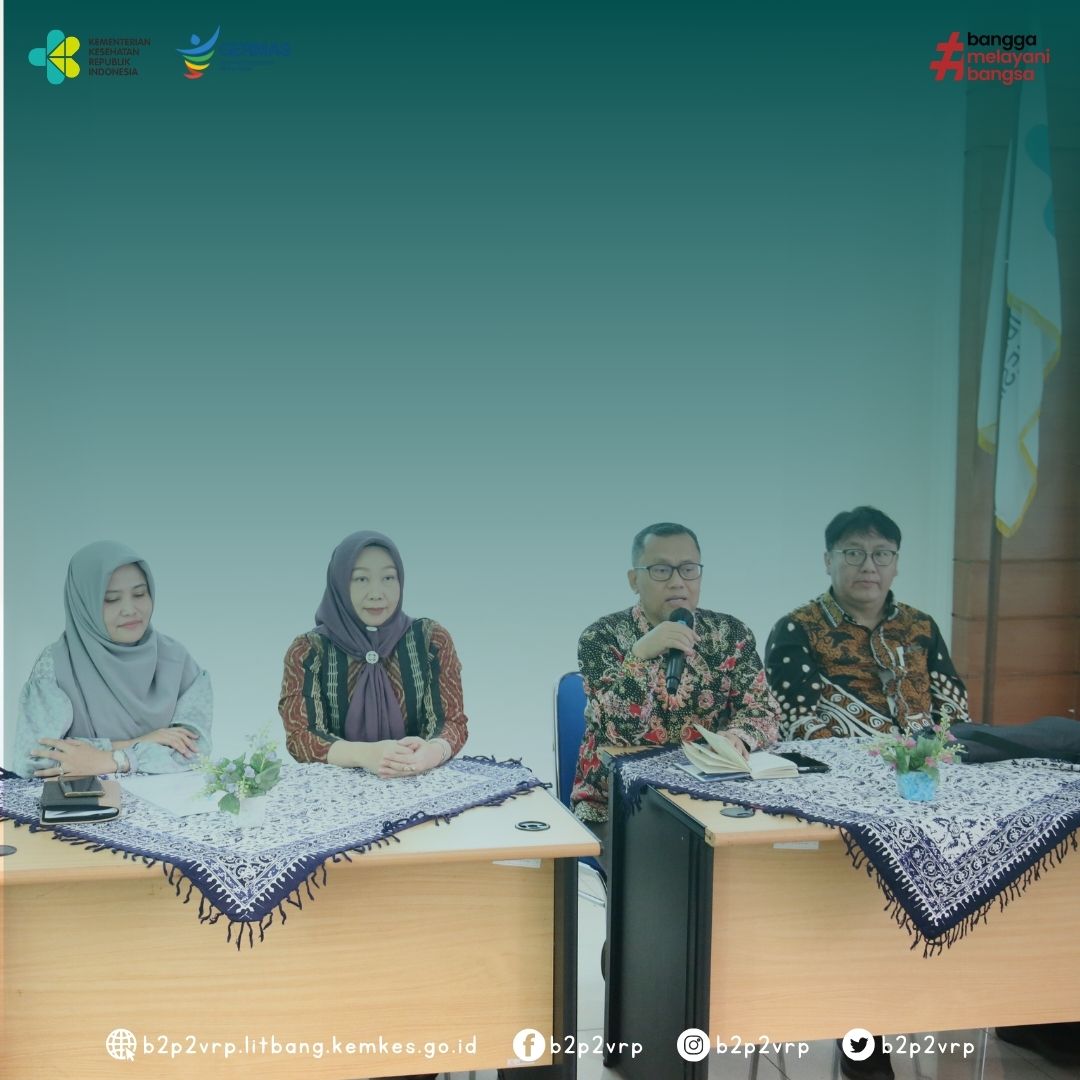 Acara diawali dengan laporan memori jabatan Plt.Kepala Ibu Siti Alfiah, SKM, M.Sc. Dalam laporannya, disampaikan bahwa saat ini B2P2VRP melaksanakan dua tugas utama, melaksanakan fungsi dalam rangka memenuhi target indikator kinerja kegiatan (IKK) tahun 2023 sebagai UPT BKPK dan melaksanakan persiapan sebagai Balai Besar Laboratorium Kesehatan Lingkungan sebagai UPT Direktorat Jenderal Kesehatan Masyarakat per 1 Januari 2024.  Indikator kinerja kegiatan B2P2VRP Tahun 2023 meliputi persentase kebijakan kesehatan yang disusun berdasarkan rekomendasi kebijakan BKPK (80), nilai kinerja penganggaran BKPK (93), dan persentase realisasi anggaran satuan kerja (95).