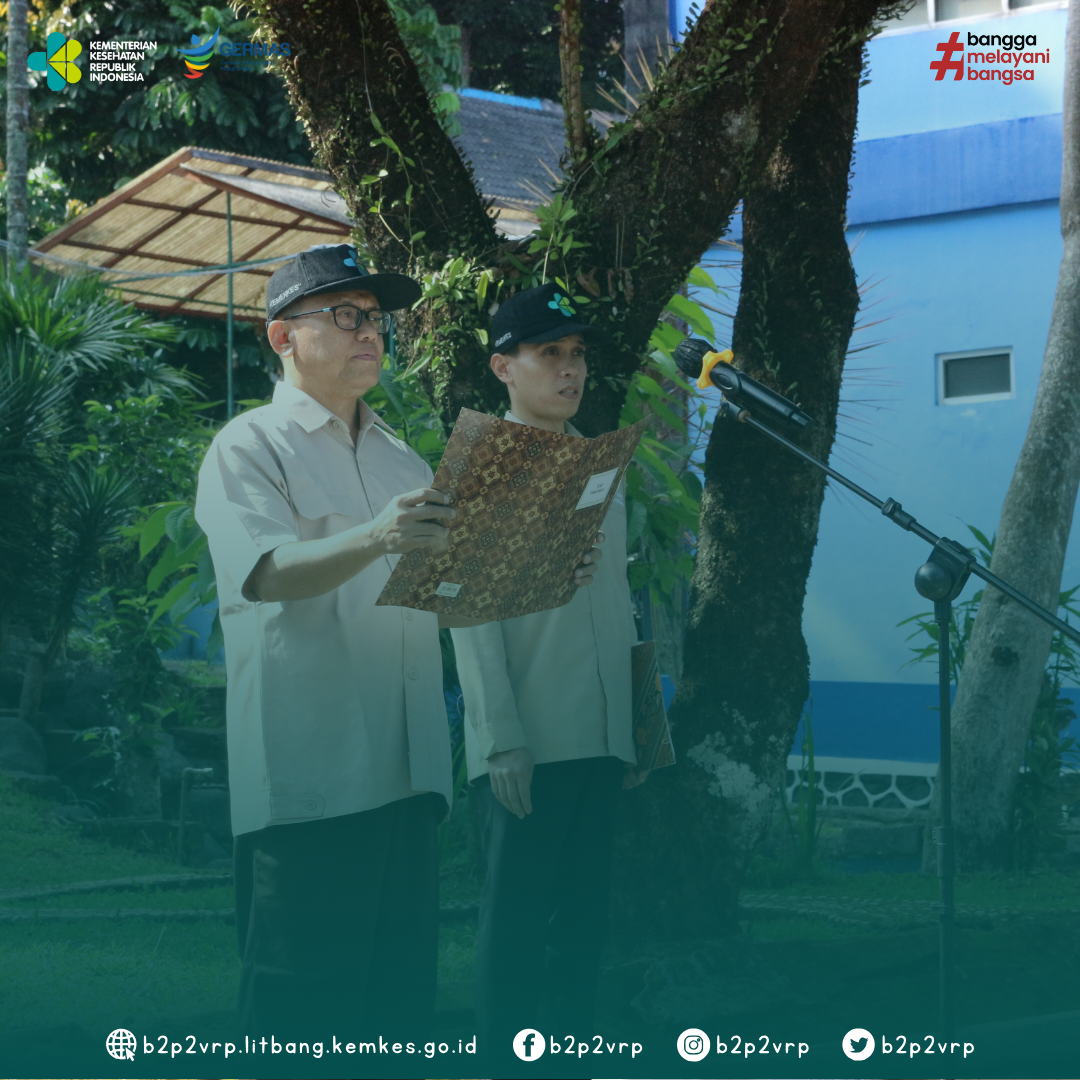 Setiap tahunnya, seluruh warga Kementerian Kesehatan melaksanakan upacara HKN. Upacara HKN di B2P2VRP Salatiga tahun ini dipimpin langsung oleh Kepala B2P2VRP Bapak Akhmad Saikhu, SKM, M.Sc.PH. Upacara dihadiri oleh seluruh pegawai B2P2VRP Salatiga. Rangkaian upacara dimulai dengan mengheningkan cipta, pembacaan pembukaan UUD 1945, pembacaan sambutan Menteri Kesehatan, dan ditutup dengan doa.