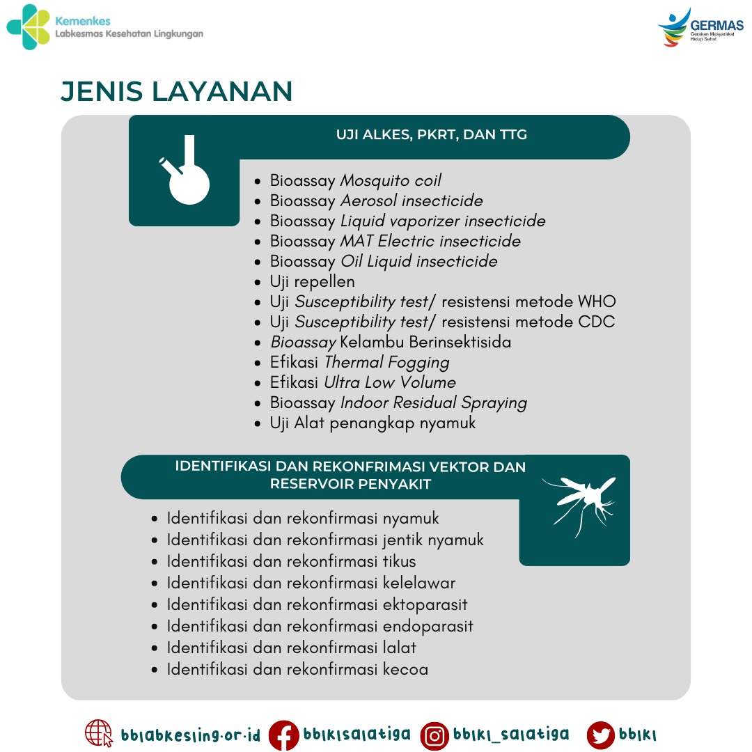 Balai Besar Laboratorium Kesehatan Lingkungan (BBLKL) hadir untuk mendukung kesehatan masyarakat Indonesia dengan berbagai layanan berkualitas. Tapi tahukah kalian layanan apa saja yang ada di BBLKL?