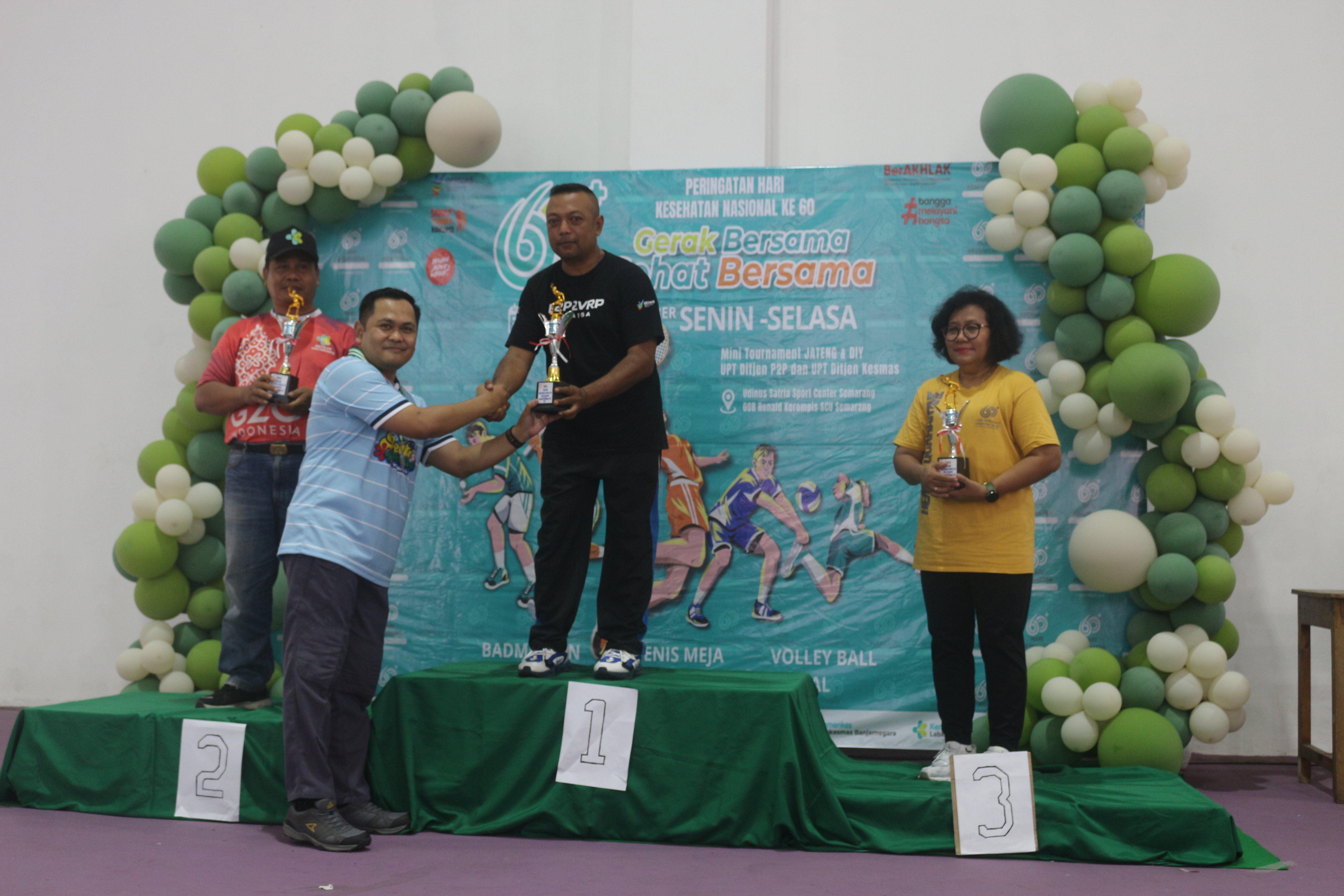 - Juara 1 ganda campuran tenis meja (Evi Sulistyorini – Balai Besar Laboratorium Kesehatan Lingkungan Salatiga berpasangan dengan Sunarto – RSUD Kota Salatiga)
