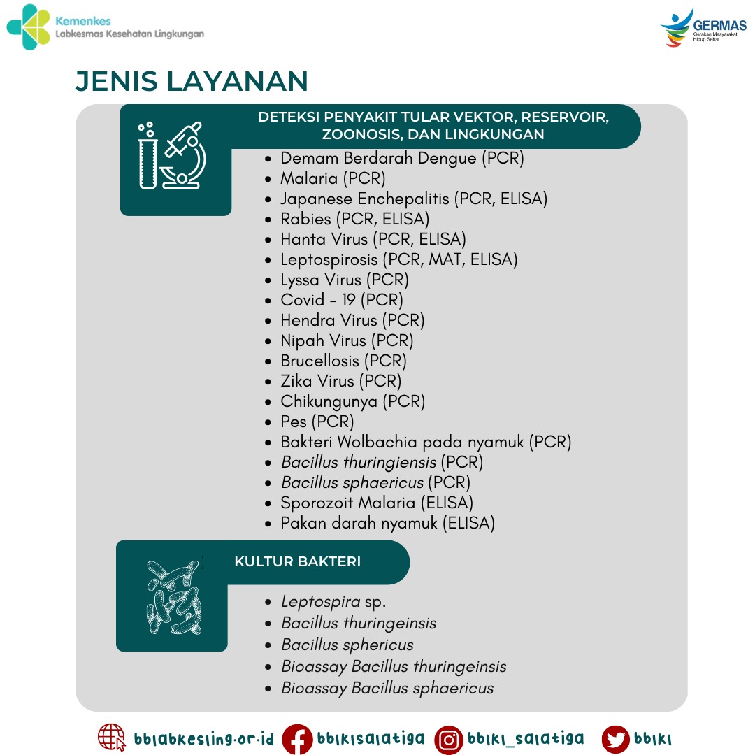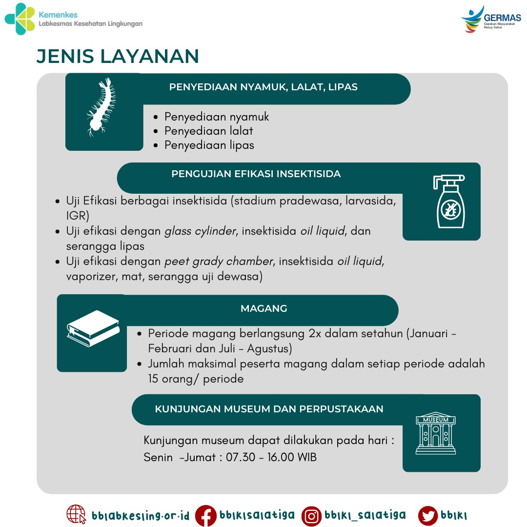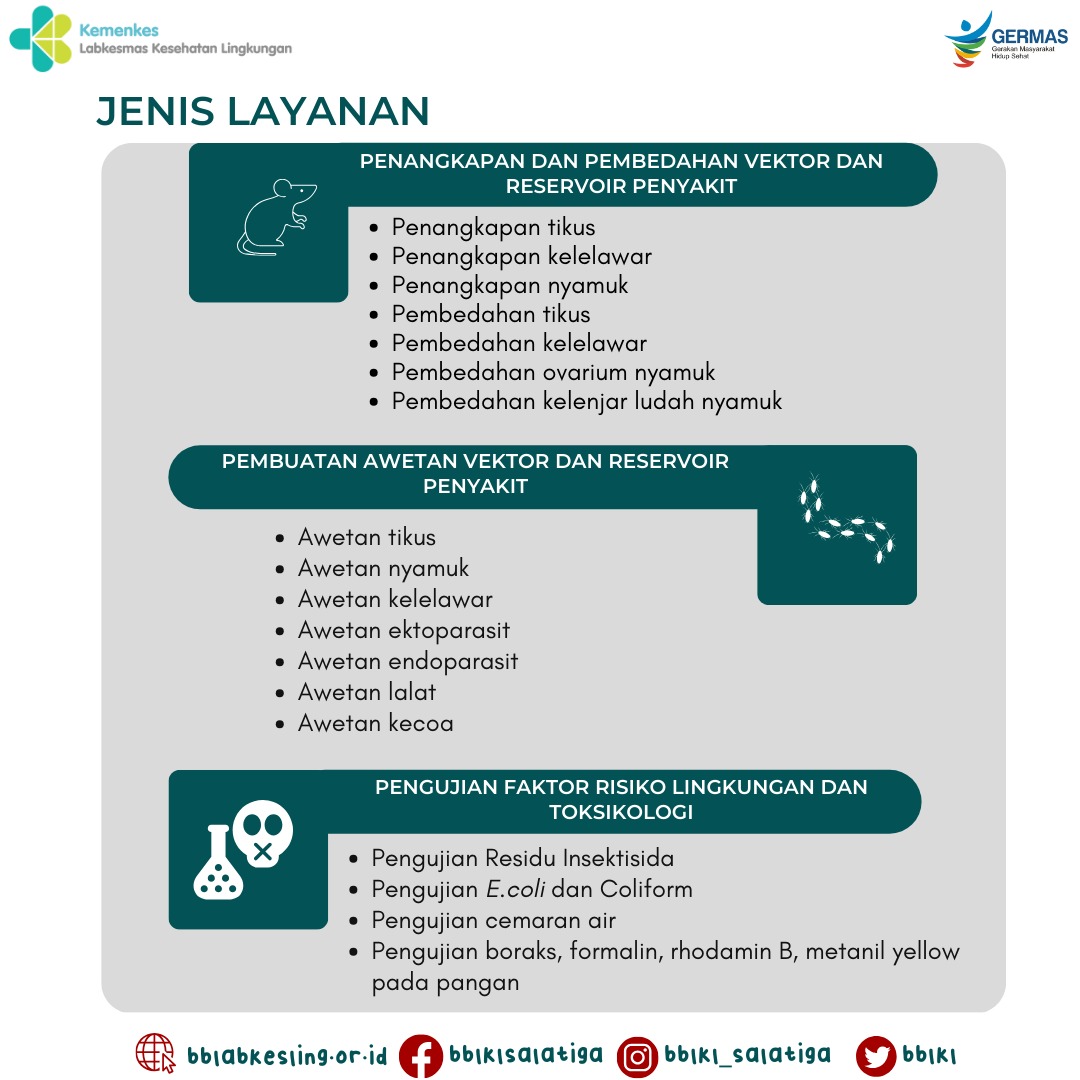 Balai Besar Laboratorium Kesehatan Lingkungan (BBLKL) hadir untuk mendukung kesehatan masyarakat Indonesia dengan berbagai layanan berkualitas. Tapi tahukah kalian layanan apa saja yang ada di BBLKL?