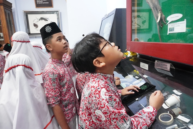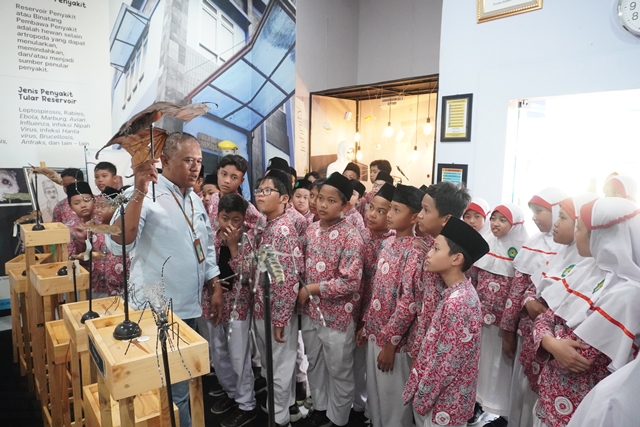 Salatiga, 25 September 2024 – Pada tanggal 25 September 2024, sebanyak 185 siswa kelas VI dari SD Muhammadiyah Plus Salatiga melaksanakan kegiatan outing class ke wahana ilmiah DUVER. Wahana ilmiah DUVER merupakan pusat dokumentasi, informasi, spesimen, serta display/peragaan ekobionomi pengendalian vektor dan reservoir di Indonesia. Wahana ini menjadi salah satu alternatif bagi siswa sekolah untuk memperluas pengetahuan tentang vektor, reservoir, zoonosis, dan kesehatan lingkungan. Para siswa melakukan kunjungan ke 4 anjungan, yaitu (1) anjungan vektor, (2) anjungan reservoir, (3) anjungan zoonosis, dan (4) anjungan covid-19. DUVER memiliki koleksi berbagai spesimen vektor dan reservoir dari seluruh indonesua, diorama survey, hingga visualisasi pandemi Covid-19.